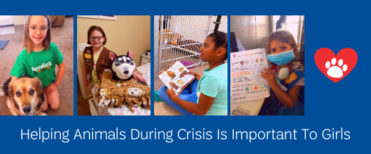 Supporting animals is a special and unique way for girls to be of service in this time of need – as many girls love animals, they quickly see how pets are important members of our communities, and this helps fill a gap when animals aren’t top of mind for all adults during this pandemic directly affecting people.